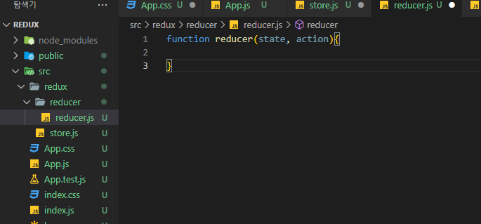 리듀서 폴더와 파일을 생성하고 그 안에서 함수를 만들어준다