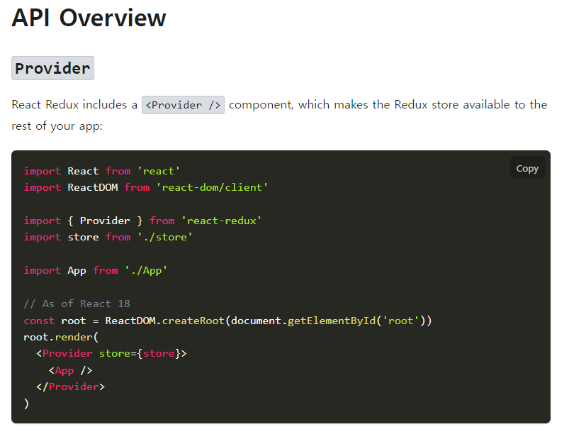 리덕스의 스토어를 만들게 한다