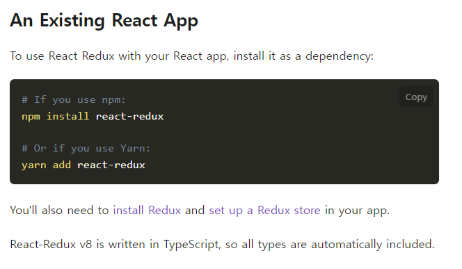 리액트 리덕스도 함께 설치해 줘야 한다