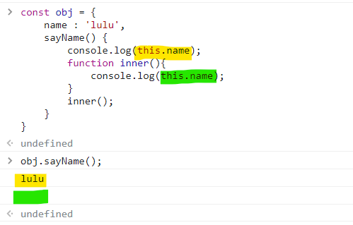 이 때 inner의 this는 obj가 됐다 (inner의 this.name이 lulu로 나옴)