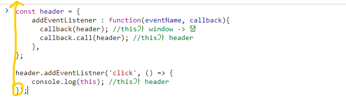- 위의 코드에서 this는 header(addEventListner 앞에 있는 객체)를 가리킨다