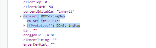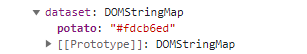 ex) data-color 대신 data-potato를 넣으면 프로퍼티에 potato로 표시 된다