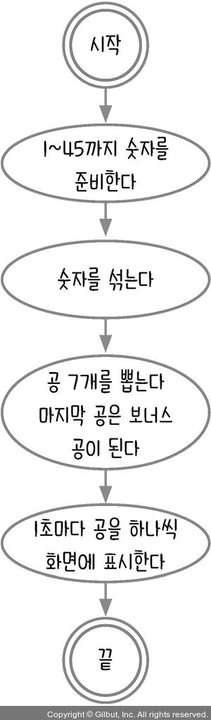 전체 공 개수를 45개로 하고 이 중에서 보너스 공까지 총 7개를 뽑는다 (마지막 공이 보너스 공)